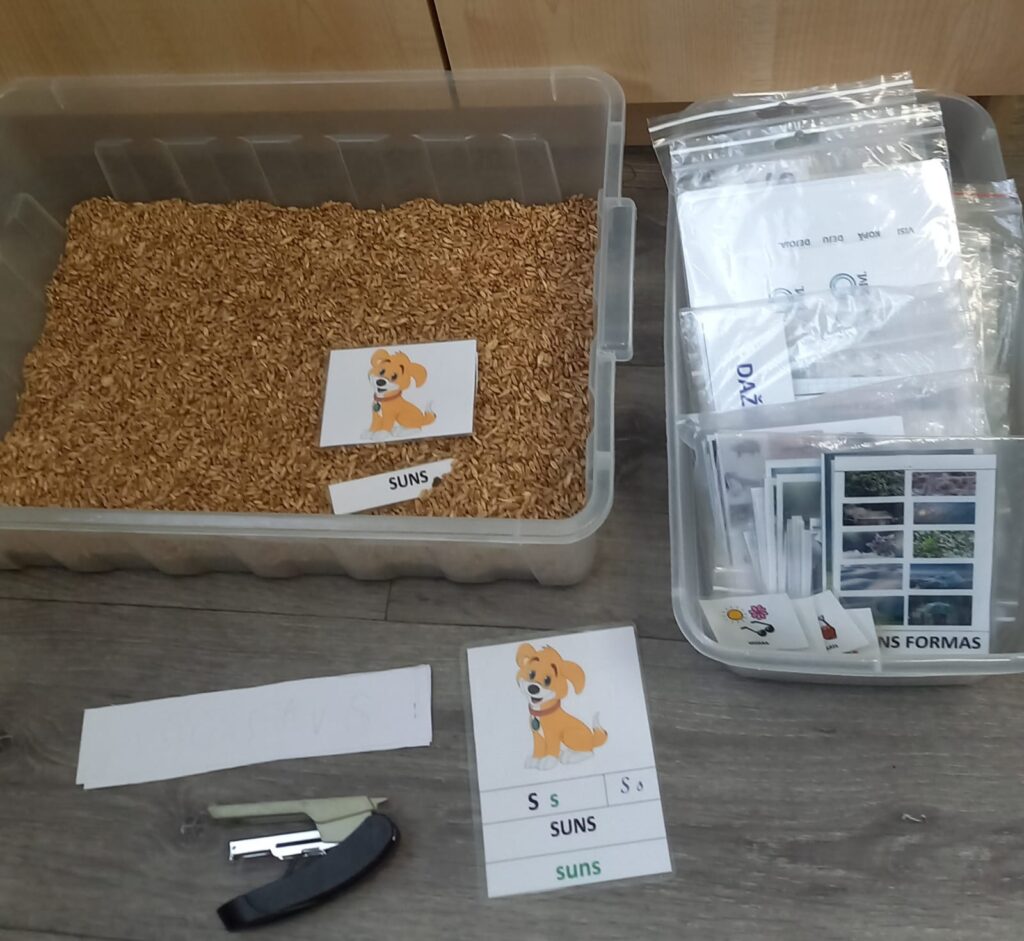 Mērķi. Sīkās motorikas attīstīšana, kustību koordinācija, vārdu krājuma paplašināšana, saistīt attēlu un vārdu, klasificēt attēlotās lietas, uzlabot bērna runu un valodas sapratni, lasītprasmes attīstīšana, lasīšana