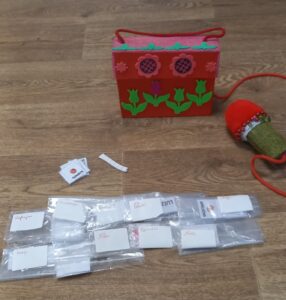 Mērķis: Attīstīt lasītprasmi, redzes uztveri, redzes atmiņu, bērna tēlaino domāšanu un palielināt vārdu krājumu. Nepieciešamie materiāli: Laminēti vārdi ar piktogrammām, intervētāja soma (kartona kastīte, aukla,