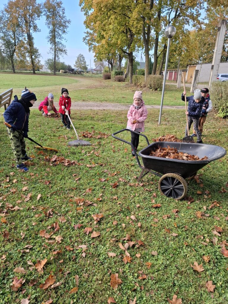 “Lielie Rūķīši” labo darbu dienā palīdz sakopt skolas teritoriju