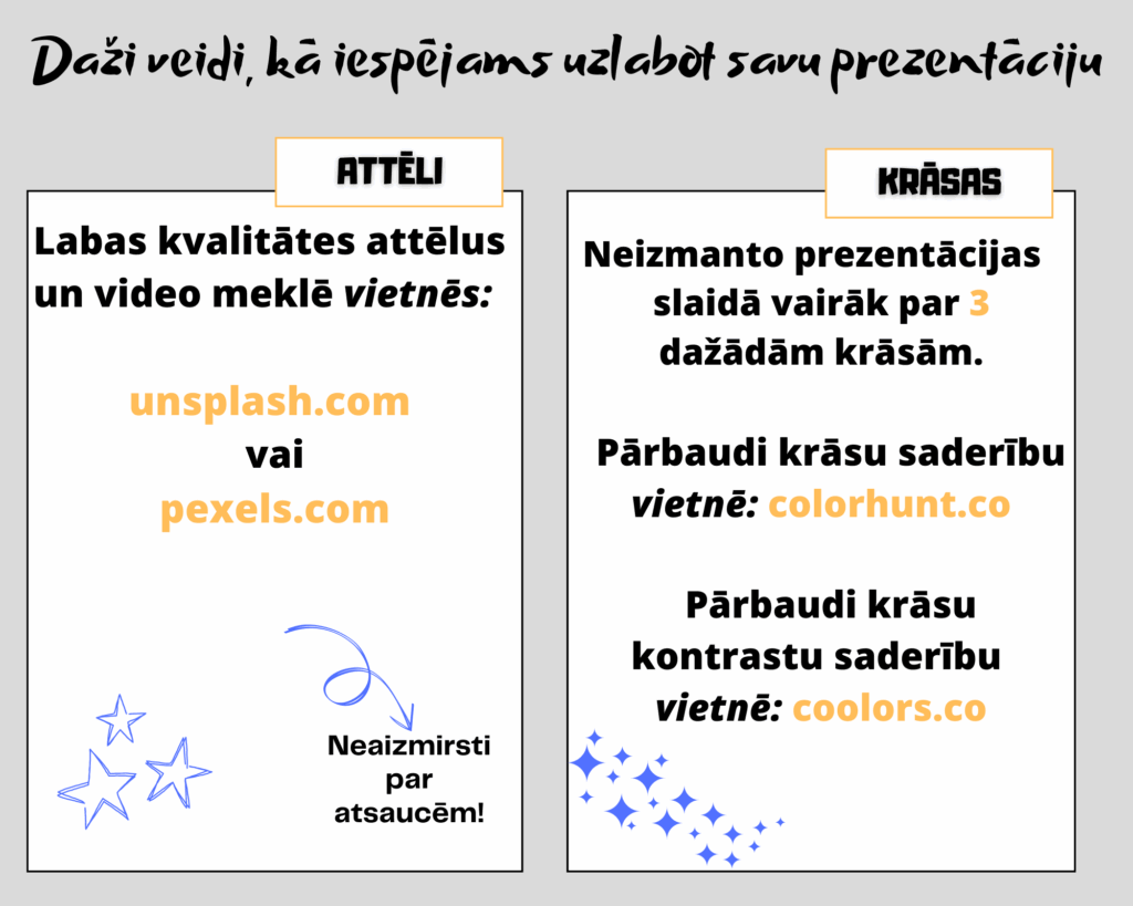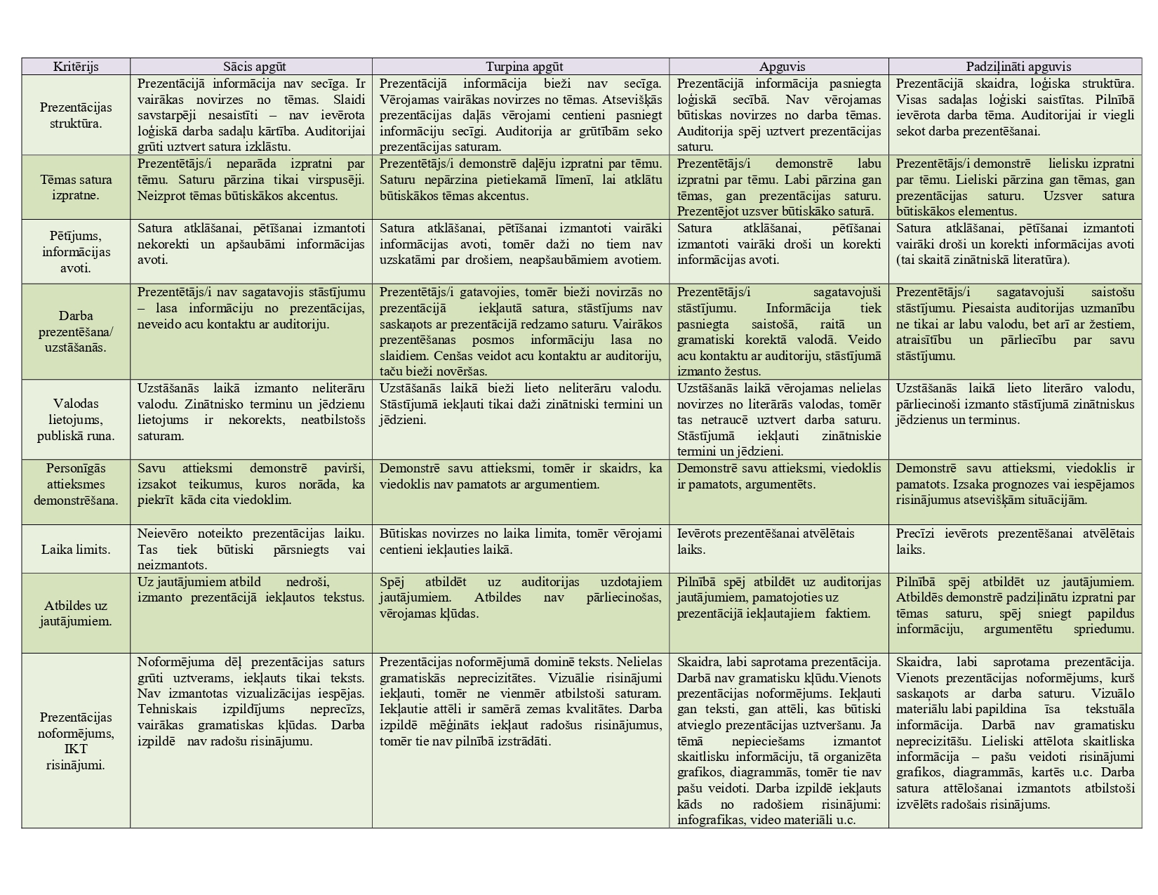 Kritēriji prezentāciju izstrādei un prezentēšanai